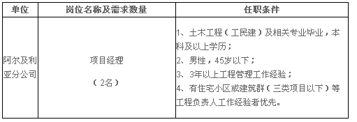 招聘公告(阿爾及利亞分公司項(xiàng)目經(jīng)理崗位)